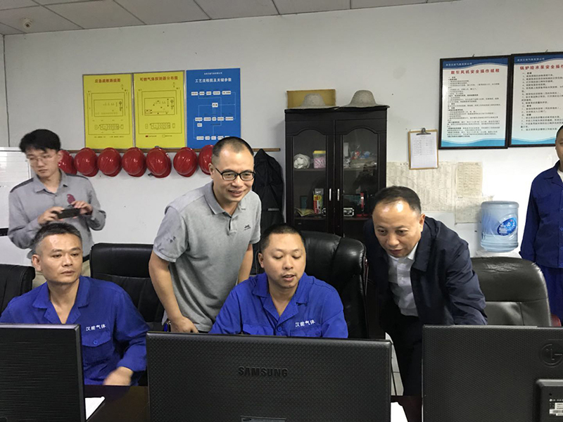 随后,调研组一行来到公司中控室,负责人万学敏介绍了公司先进的自动化控制技术,并一同认真查看了监控报警系统页面,领导们对公司在安全生产管理和先进智能技术方面所做的工作给予了充分肯定,并提出继续保持安全生产,坚持节能环保创新!