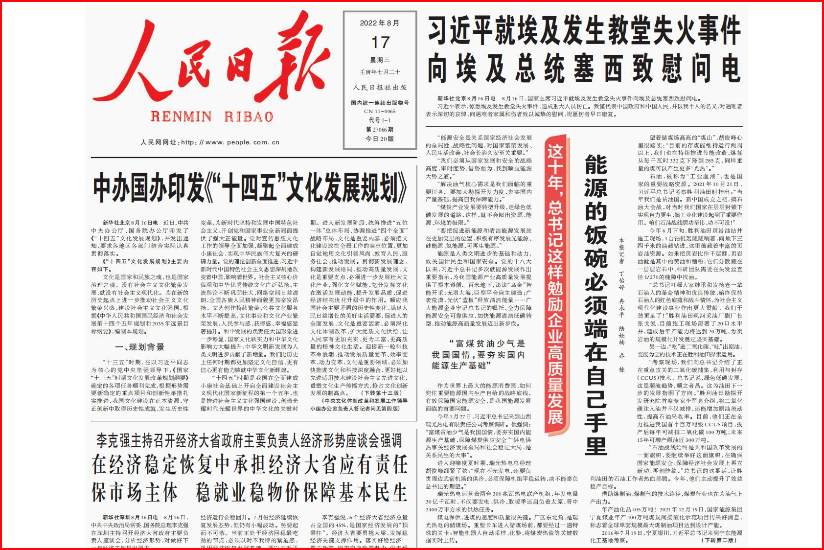 能源是人类文明进步的基础和动力,攸关国计民生和国家安全。党的十八大以来,习近平总书记多次就能源发展作出重要指示,为我国能源产业高质量发展提供了根本遵循。百米地下,滚滚“乌金”智能开采;无垠大海,巨型平台自主建造;广袤荒漠,光伏“蓝板”释放清洁能量……广大能源企业牢记总书记的嘱托,全力保障能源安全可靠供应,加快能源清洁低碳转型,推动能源高质量发展迈出新步伐。