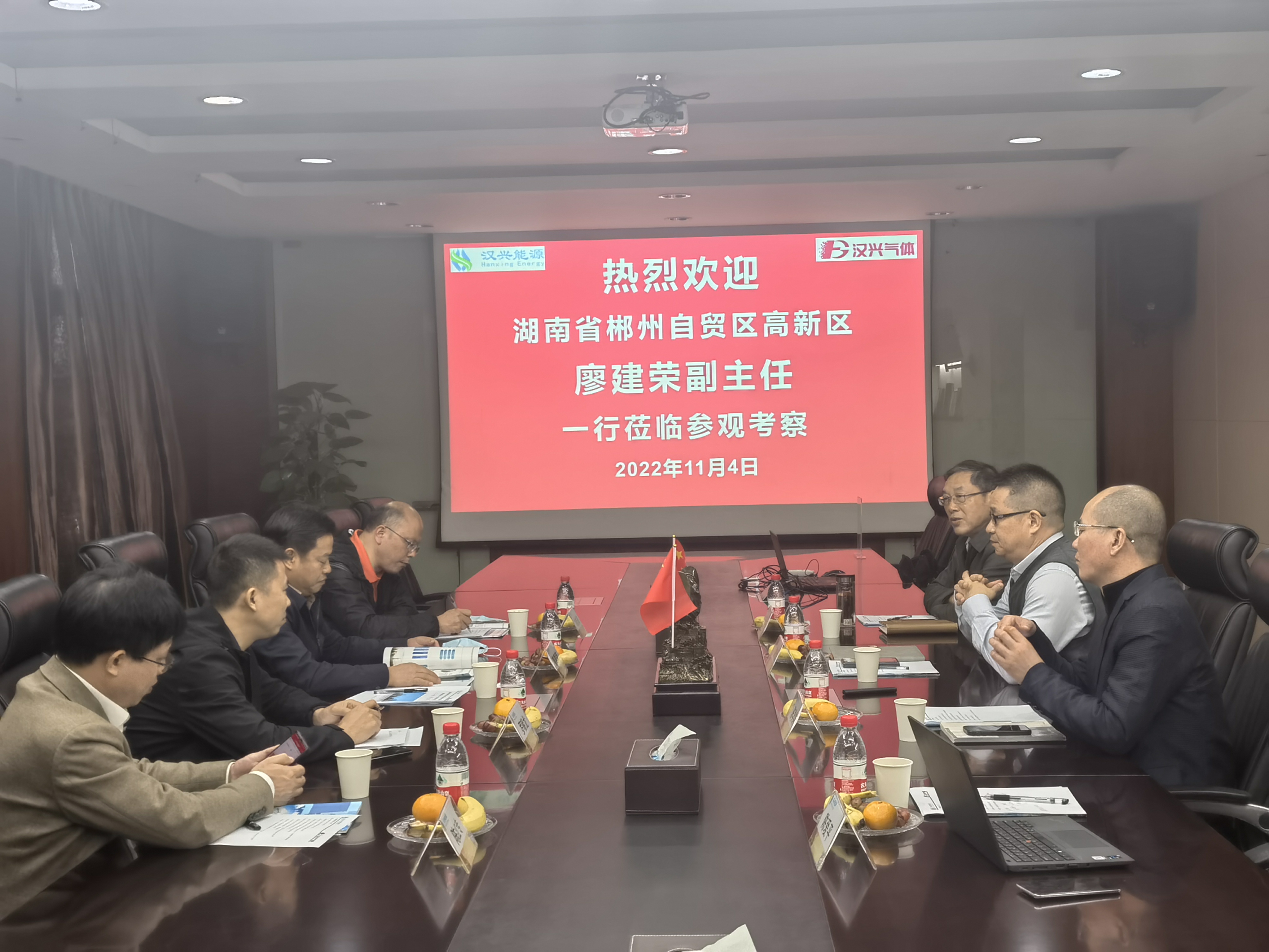 11月4日上午,湖南省郴州高新技术产业开发区(自贸片区)管委会常务副主任廖建荣率领的商务考察团到公司参观考察,汉兴气体总经理、汉兴能源副总经理戴张龙主持接待。
