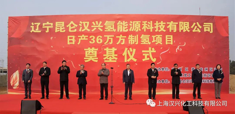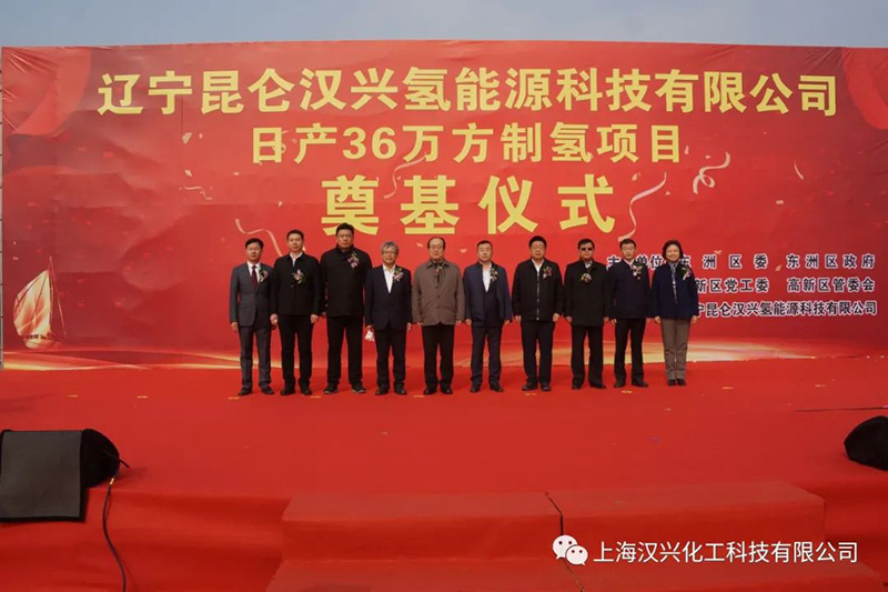 李洪宾致辞说,本项目由上海汉兴能源和抚顺昆仑新能源联合投资,产品销售半径为抚顺、沈阳、铁岭、本溪等,项目包括天然气制氢装置、氢气充装系统、氢气技术研发中心,预计明年五月底投产运行。二期项目将会增建空分装置,生产销售氧、氩、氢、氮、氦等各种气体。