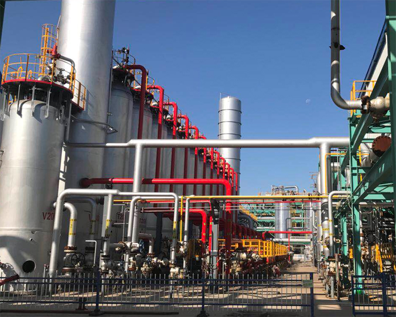 该乙二醇装置是目前国内最大的单套乙二醇装置,首次采用自主技术,全部设备材料国产化。其配套的120000Nm³/h 氢气装置也是继我公司为山东利华益集团乙二醇配套100000Nm³/h氢气装置成功运行后又一投产的大型PSA装置。